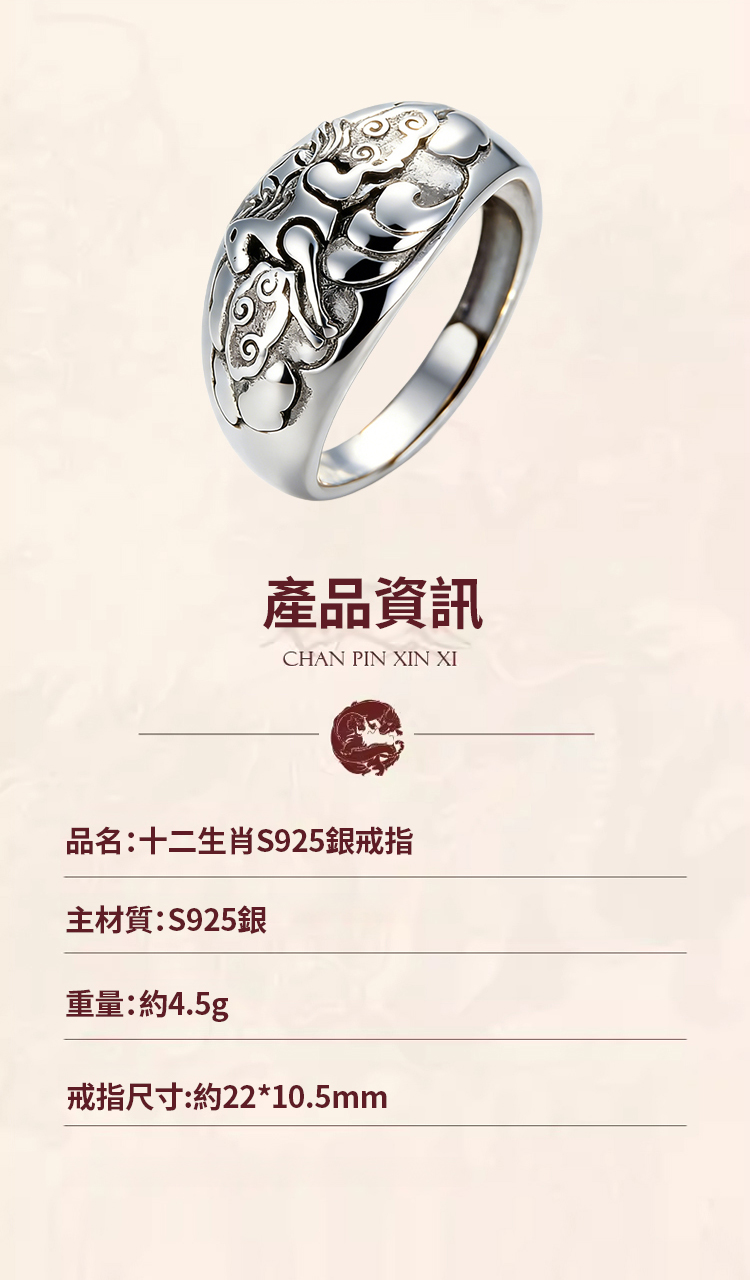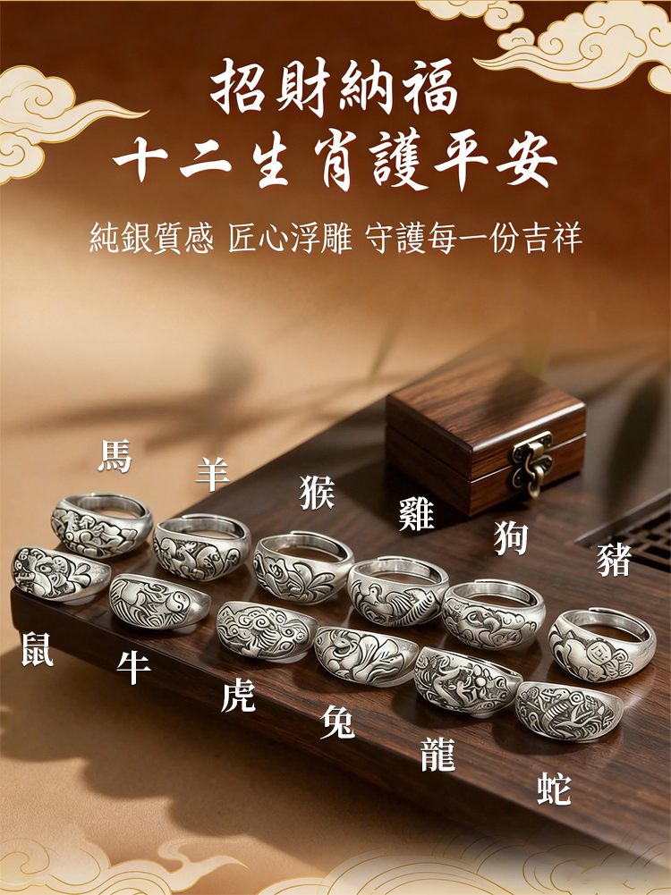 【避歲開運】十二生肖復古銀戒指