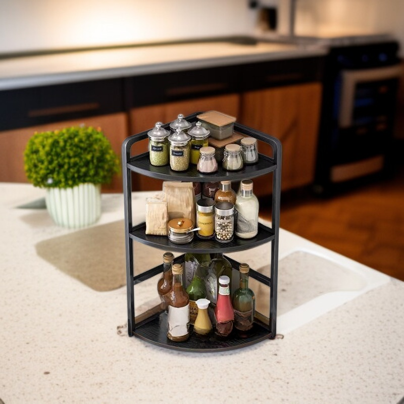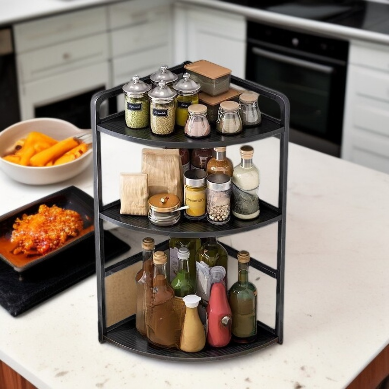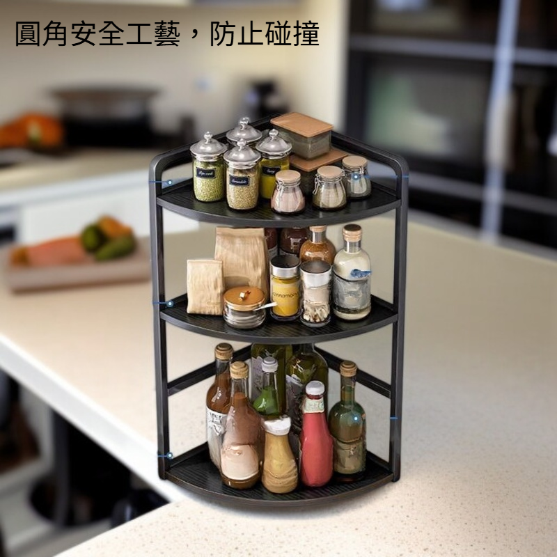 廚房檯面三角形多層調味料收納架(圓角安全設計)